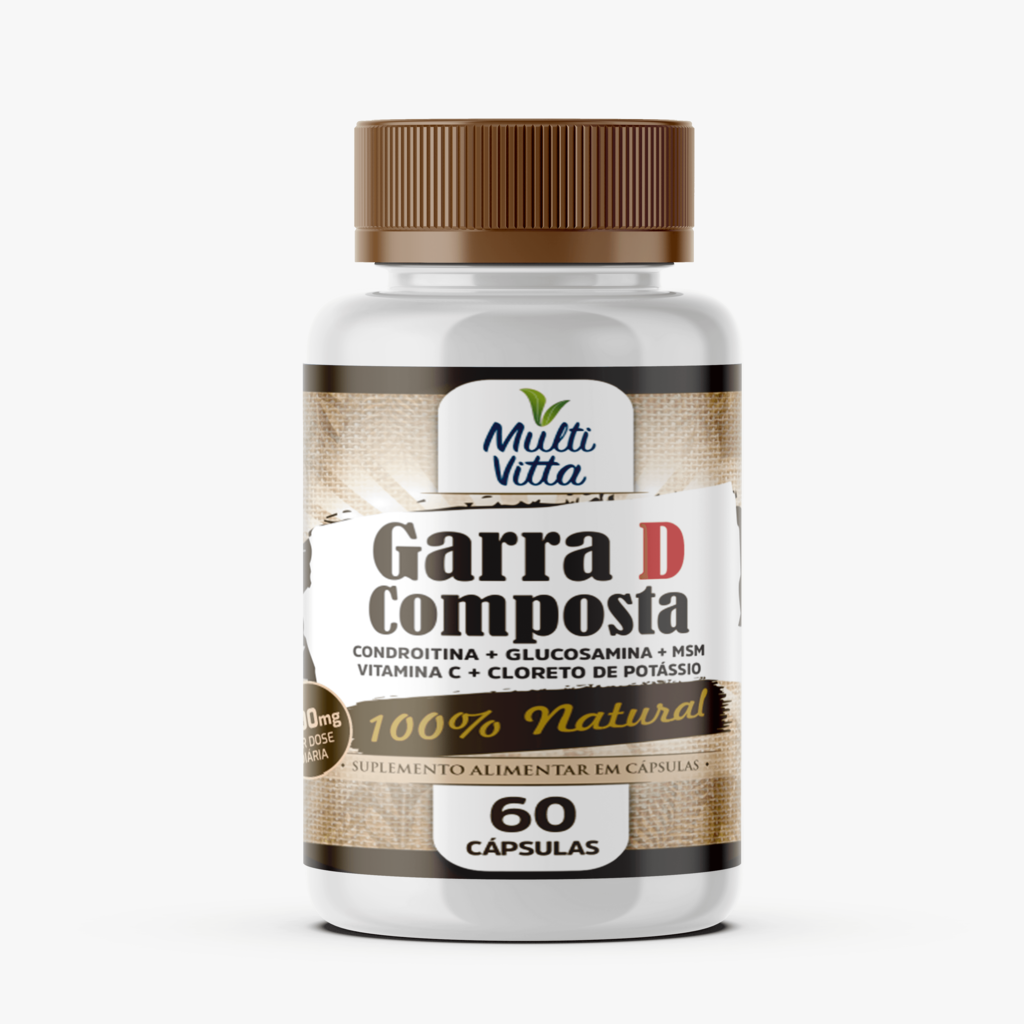 O Suplemento Garra D Composta Multivitta é apresentado em cápsulas práticas, com fórmula composta por ingredientes naturais selecionados. Pode ser utilizado como parte de uma rotina de cuidados pessoais e bem-estar.
